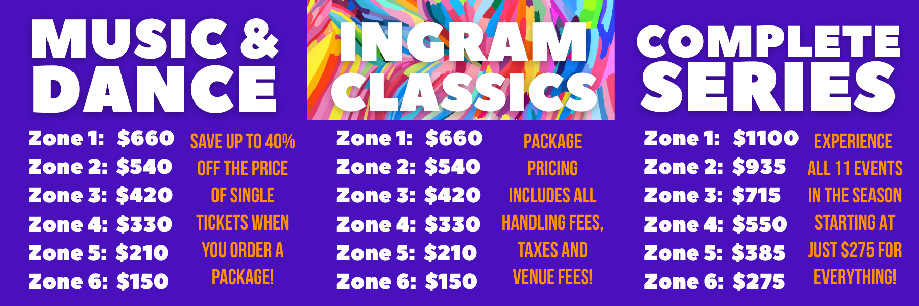 Seating options are based on the date of your order; donors and current season subscribers receive priority for seat locations. All fees are included in package pricing. Learn about subscriber benefits here.